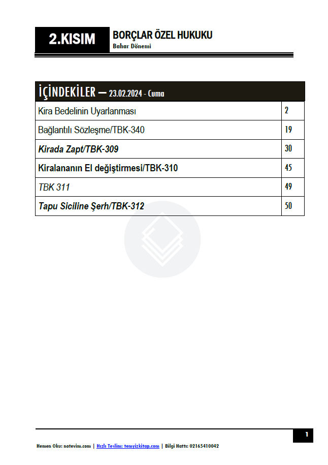 Borçlar Hukuku Özel Hükümler 23-24 Bahar 2