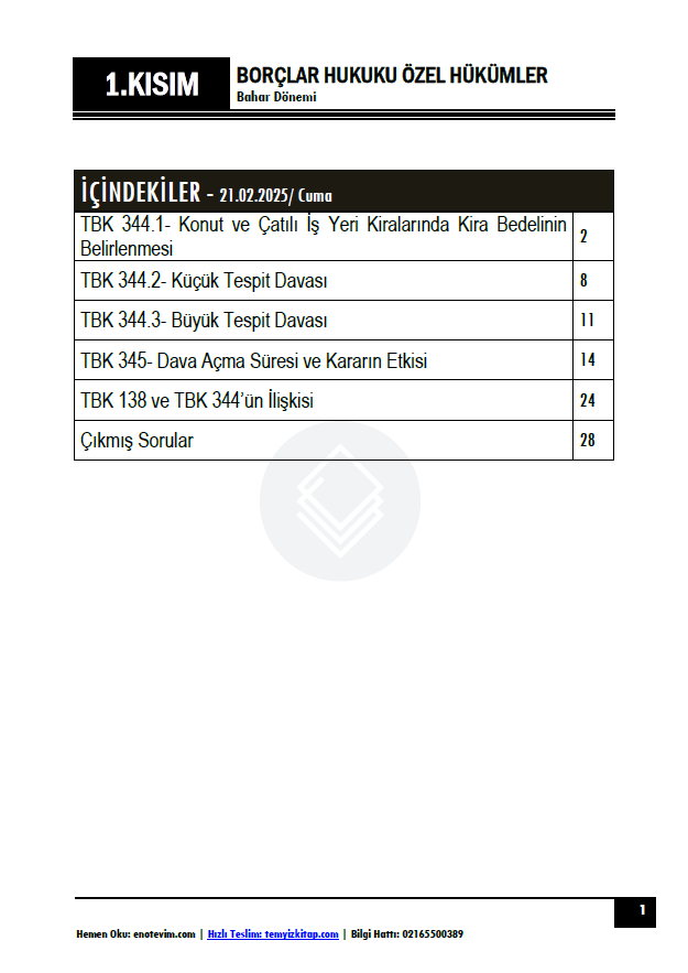 Borçlar Hukuku Özel Hükümler 24-25 Bahar 1