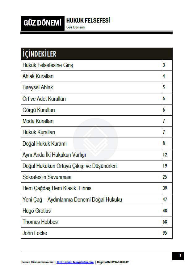 Bu ürün, önceki senelerde çıkan Hukuk Felsefesi notlarından düzenlenerek oluşturulmuş ARŞİV NOTUDUR.